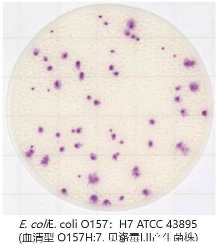 几乎所有的大肠杆菌都会产生β-葡萄糖醛酸酶,但E. coli O157:H7具有不产生β-葡萄糖醛酸酶的特性,显色与大肠菌群相同(红紫色)。