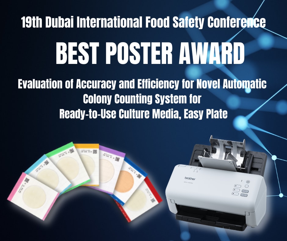 Kikkoman Biochemifa Company is proud to announce that our poster, “Evaluation of Accuracy and Efficiency for a Novel Automatic Colony Counting System for Ready-to-Use Culture Media, Easy Plate,” received the Best Poster Award at the 19th Dubai International Food Safety Conference, one of the world’s largest and most influential food safety events.