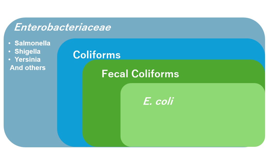 Enterobacteriaceae are defined as glucose-fermenting, oxidase-negative bacteria that form pink, red, or purple colonies on VRBG (Violet Red Bile Glucose) agar medium. This group includes major enteric pathogens like Salmonella, Shigella, and Yersinia, which are lactose non-fermenters and fall outside the definition of "coliforms." Due to their clear taxonomic classification, Enterobacteriaceae are widely used as a hygiene indicator in place of "coliforms" in the European Union and other regions. In Japan, Enterobacteriaceae were first adopted as a hygiene indicator in 2011 for the compositional standards of raw meat for consumption.